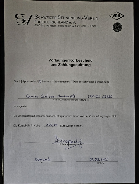 Carli wurde am 20.09.2025 in Oberdorla ohne Einschränkungen angekört.