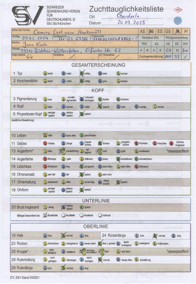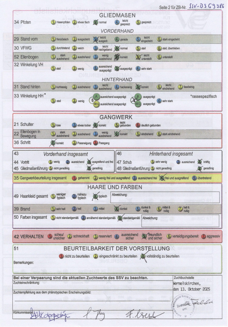 Carli wurde am 20.09.2025 in Oberdorla ohne Einschränkungen angekört.